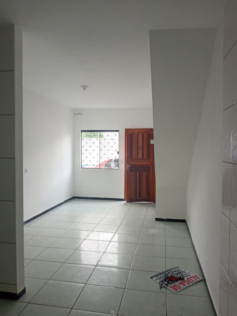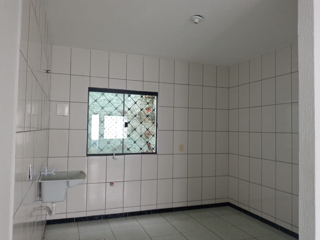 Apartamento térreo, dois quartos, sala e cozinha conjugadas com lavanderia, um banheiro, vaga de estacionamento.